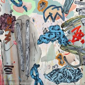 That he investigates this heady terrain with such visceral power is one of his most startling achievements. While his artworks most directly hail from the lineage of postmodern pastiche, each composition is the product of raw, unmediated impulse. He interjects recurring images—clouds, raindrops, and other pointedly anti-aesthetic marks—into his tableaux, alluding to the possibility of narrative. A hallmark of his technique is a sensual and time-intensive process of deploying liquid graphite to create the uncanny illusion of gestures within a gesture. Across his varied and ever-evolving oeuvre, Gertjejansen marries sophistication and accessibiity, gravitas and humor, inviting viewers into undifferentiated realms of knowledge and sensation.