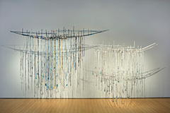 A graduate of the San Francisco Art Institute, Bedsole is a recipient of the prestigious Joan Mitchell Foundation public-art grant. Her work is included in the permanent collections of the New Orleans Museum of Art, South Carolina Museum of Art and site-specific installation, You Are The River, is on view until March 13th, 2017 at the Mobile Museum of Art. Bedsole’s longtime interest in all things aqueous—bodies of water, vessels, maritime history and the concept of fluidity itself—harken back to her early years growing up on the gulf coast. Today, in her studio overlooking the Mississippi River in New Orleans, she creates artworks that reference rain, waves and the calm that resides in the center of the storm.