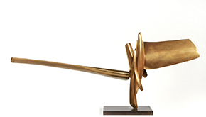 In an elegant suite of fabricated bronze sculptures, David Borgerding marries cool material sophistication with an invigorating sense of dynamism. His works have a distinct musical quality about them, with long, lyrical lines punctuated by shorter staccato rhythms. Working together in concert, these elements play visual variations on the themes of ascension and expansion, as forms rise outward and upward, seemingly unbound by the strictures of gravity. The forms recall the abstracted organicism of Constantin Brancusi’s and Isamu Noguchi’s works, yet for all their biomorphic allusiveness, Borgerding’s works do not directly reference representational objects. “The forms that I enjoy,” he explains, “don’t make me think of anything literal; they’re just forms that have the mysterious ability to stir my soul, and when combined together, they come to life as a whole.”