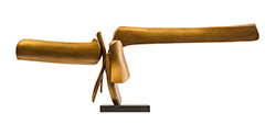 In his third solo exhibition with Callan Contemporary, David Borgerding presents a collection of fabricated bonze sculptures that marry intricate planning and detail with a sense of spontaneity, lyricism, and freedom. Each sculpture begins as a series of loose sketches, followed by a cardboard maquette once the composition is fully formed. Next, during an arduous fabrication process, Borgerding works flat sheets of bronze into seamless forms, often counterposing wide, horizontal expanses with dynamic vertical ascents. Arching and jutting in elegant, calligraphic swaths, they seem to translate the gestural vitality of Abstract Expressionist painting into three dimensions. Despite the meticulousness and strategic problem- solving that go into creating each piece, the final compositions are buoyant, rhythmical, and exultant.