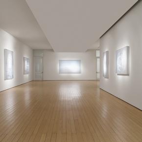 In Translucent, his second solo exhibition with Callan Contemporary, Udo Nöger advances his ongoing exploration of light and form. The technique he pioneered in the early 1990s—creating paintings in which light itself is the medium—continues to captivate viewers around the world. Superimposing scrim-like layers of tautly stretched canvas (dipped in mineral oils to heighten translucency), he embeds an array of gestures and cut-out forms within the picture plane. This allows light to penetrate and travel through the painting in three dimensions, an effect unique to his work. With their immaculate whites and shimmering grayscale tones, the artworks are serenely contemplative, yet simultaneously radical in their reimagining of what a painting can be—a characteristic they share with the Arte Povera movement of the 1960s and 70s. “I had this idea to open up the canvas,” Nöger reflects. “For me it’s very necessary that I’m not sitting in front of a canvas, filling it up with forms; I’m more interested in the endless possibilities of what’s underneath the canvas.”